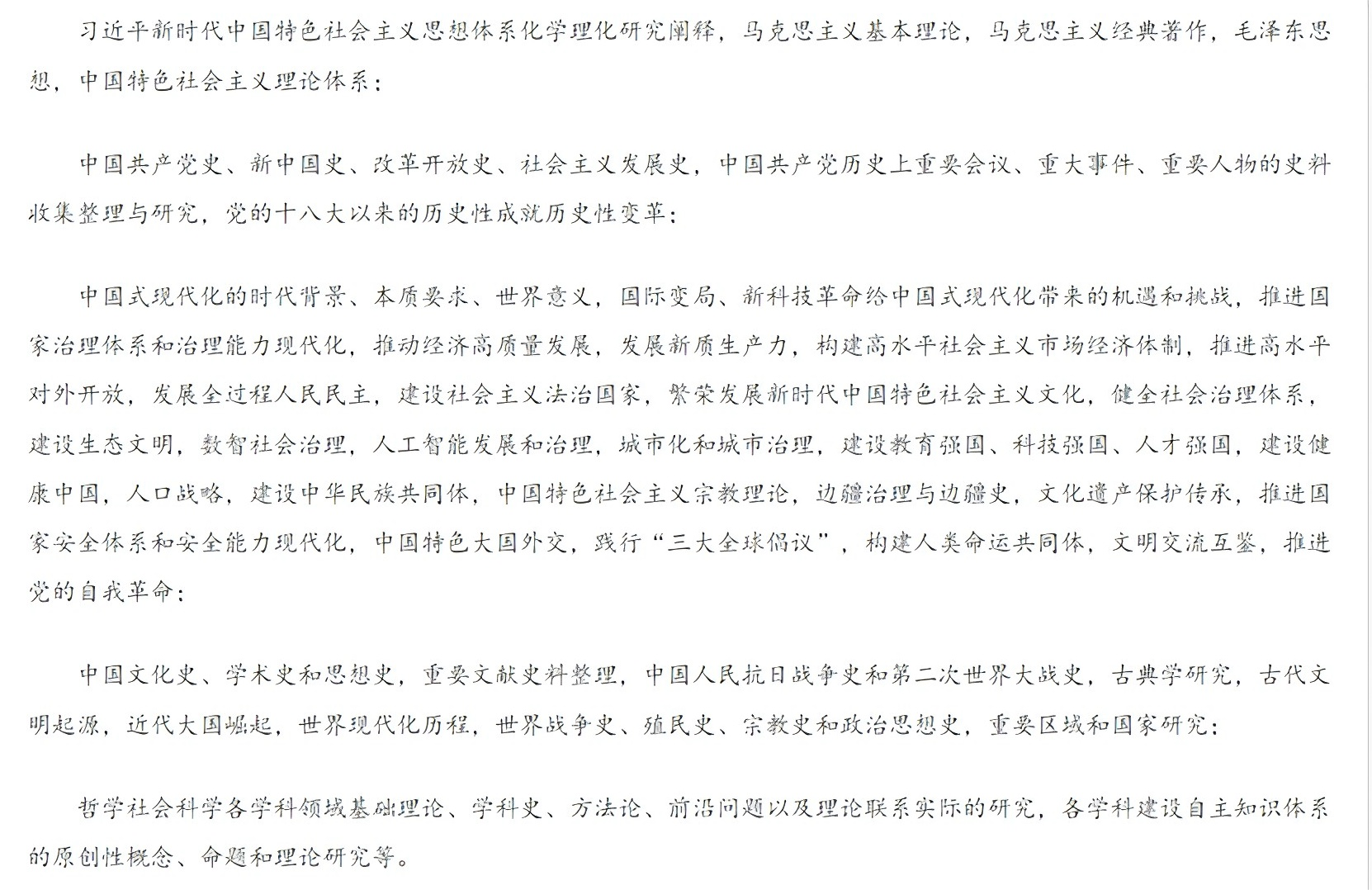 三、本次申报不发布分学科具体课题指南。申请人可对照国家社科基金近年分学科课题指南的导向、已立项课题和研究成果,对应上述项目类别的定位和要求,着眼国家需求和学科发展,突出明确的问题意识,从学科视角按照选题规范自主拟定题目申报,避免重复研究。鼓励围绕以下重点方向开展深入研究: